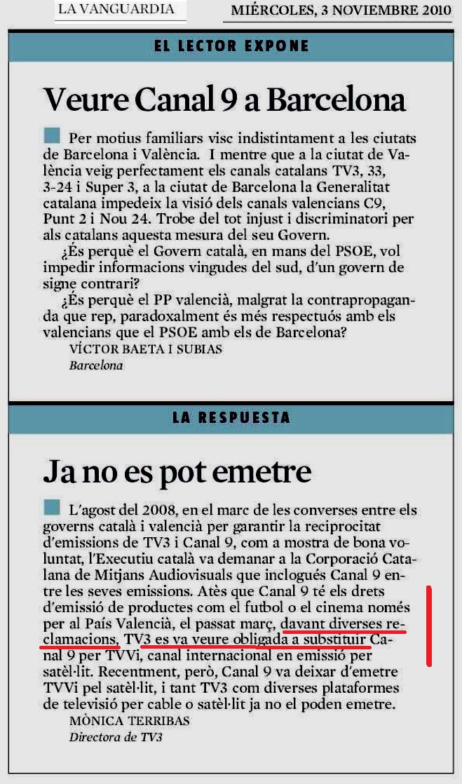 Terribas ens està dient que nosaltres no tenim dret a que el catalans vegen un partit de futbol o una pel·licula emesos des de C9, però al contrari sembla que sí, el que diem ens prenen per imbècils!!!