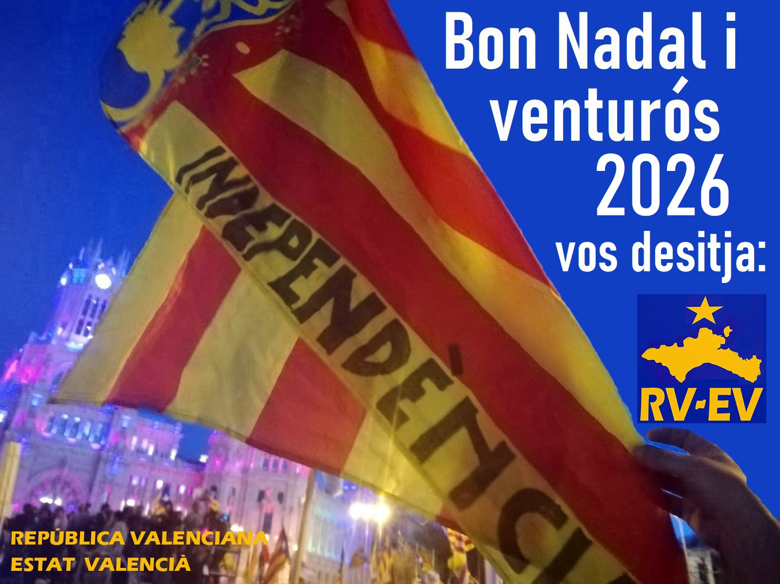 Bon Nadal i venturós 2026 vos desitja República Valenciana-Estat Valencià. PER L'ESTAT VALENCIÀ DE LA NACIÓ VALENCIANA pic.twitter.com/KYgl7kMTBn