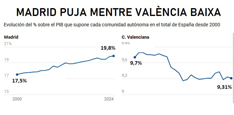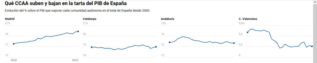 Precisamente Funcas publicó recientemente sus previsiones de crecimiento regional para 2025 y 2026, toda vez que no conoceremos estos datos oficiales hasta septiembre de 2026, en el caso de los de este año. Y en ellas, además de una estimación independiente por comunidades autónomas, ya advertían de que a futuro se abrían “dos Españas” con dos sendas de crecimiento bien diferenciadas, lo que no hará sino incrementar las brechas.