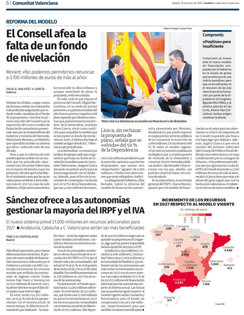 El resumen del nuevo SFA presentado con bastante detalle por la vicepresidenta primera y ministra de Hacienda, María Jesús Montero, concluye que la Comunitat Valenciana recibiria en 2027, primer año de puesta en marcha, 3.669 millones de euros más que si continuara el actual sistema. Dado que esa cifra supera el déficit de la Comunitat Valenciana en 2024 –2.495 millones–, incluso el de 2023 –3.321 millones–, podría decirse que el nuevo modelo satisface las expectativas de los valencianos.